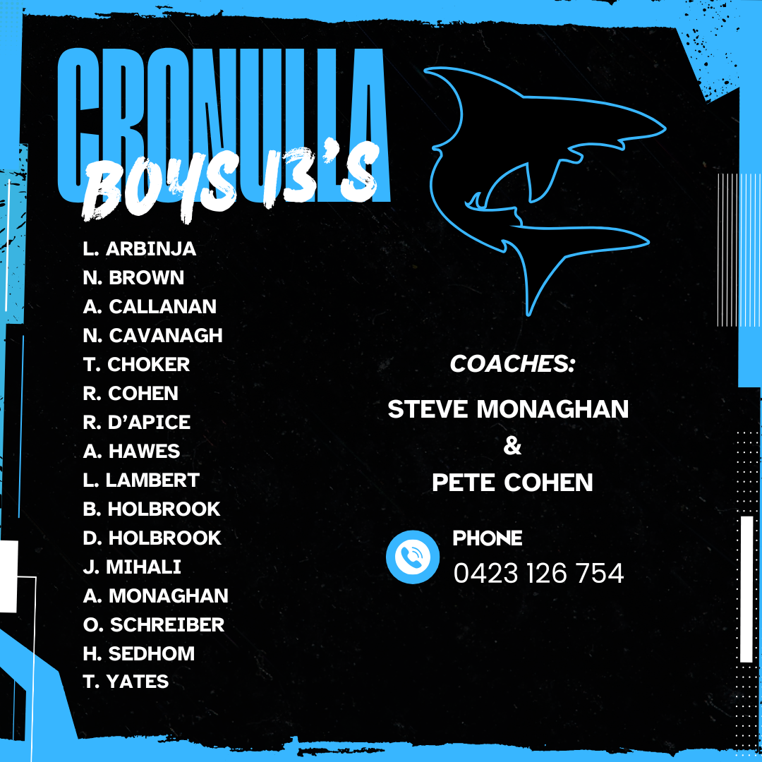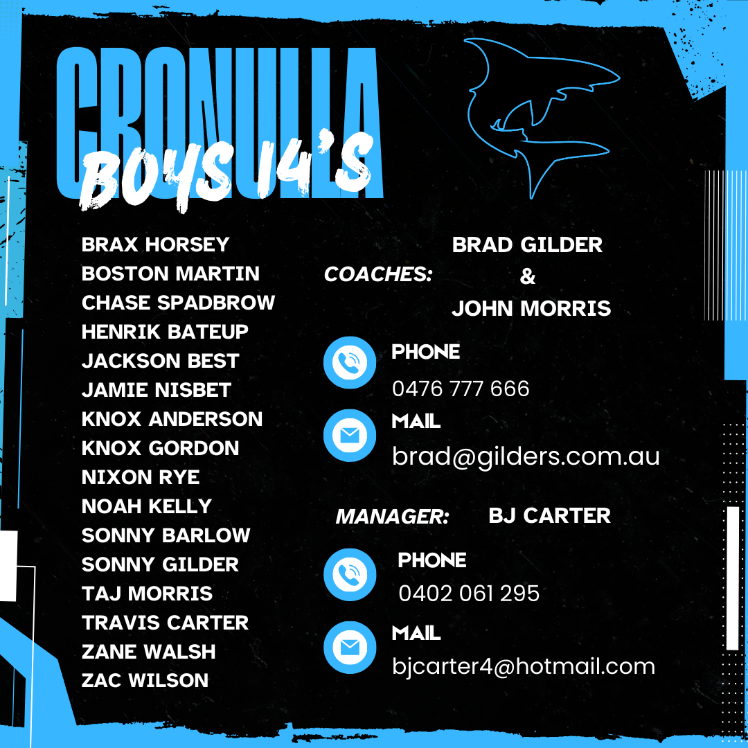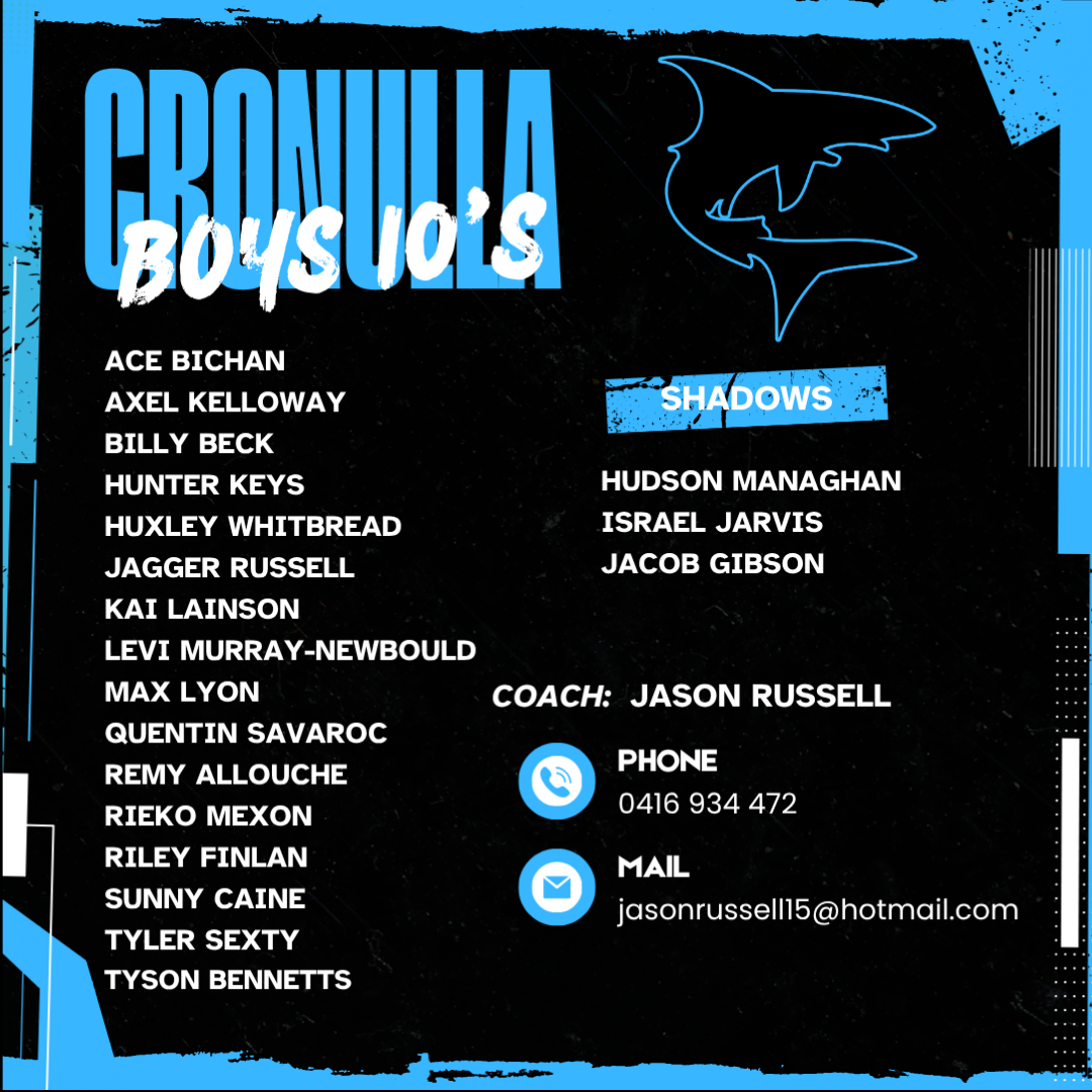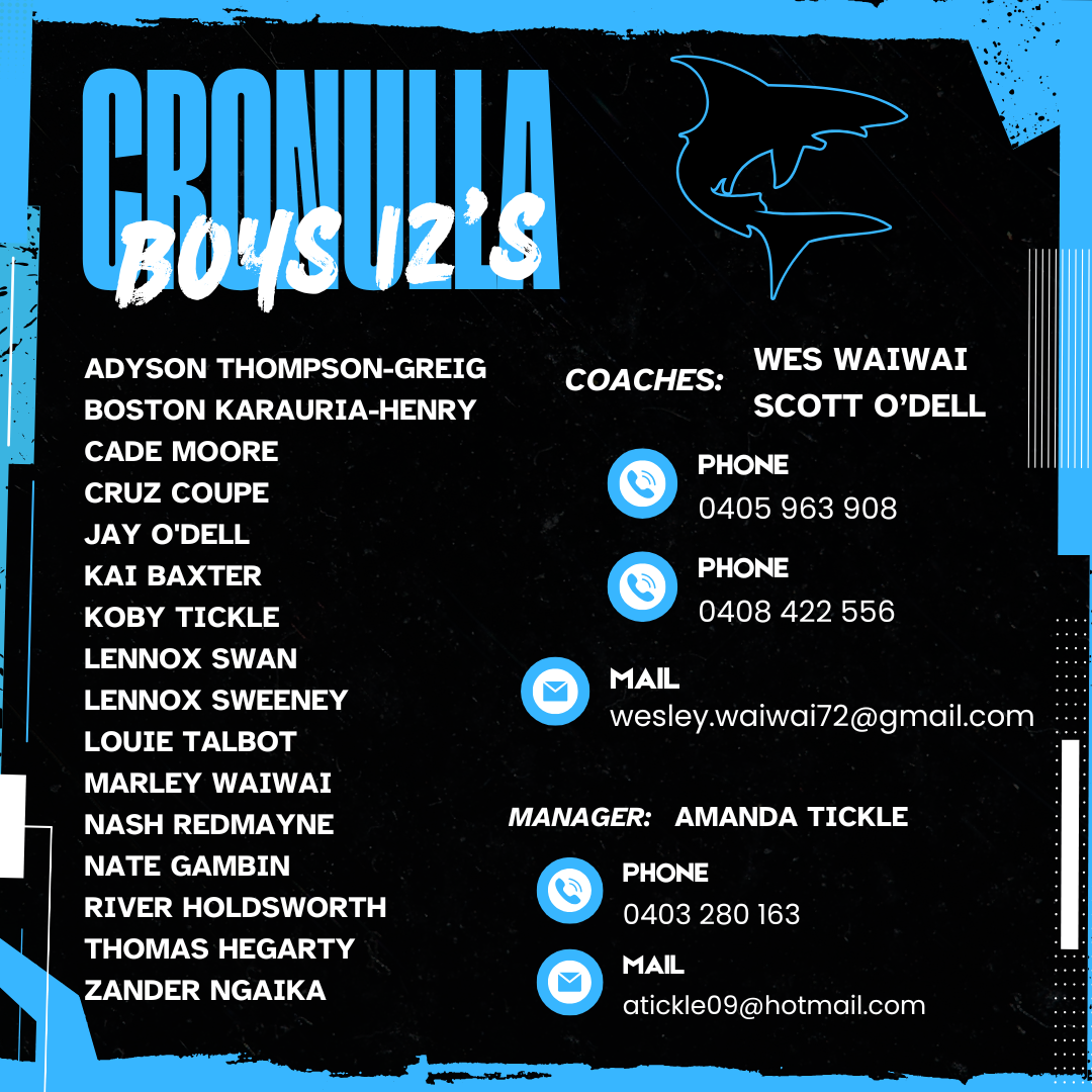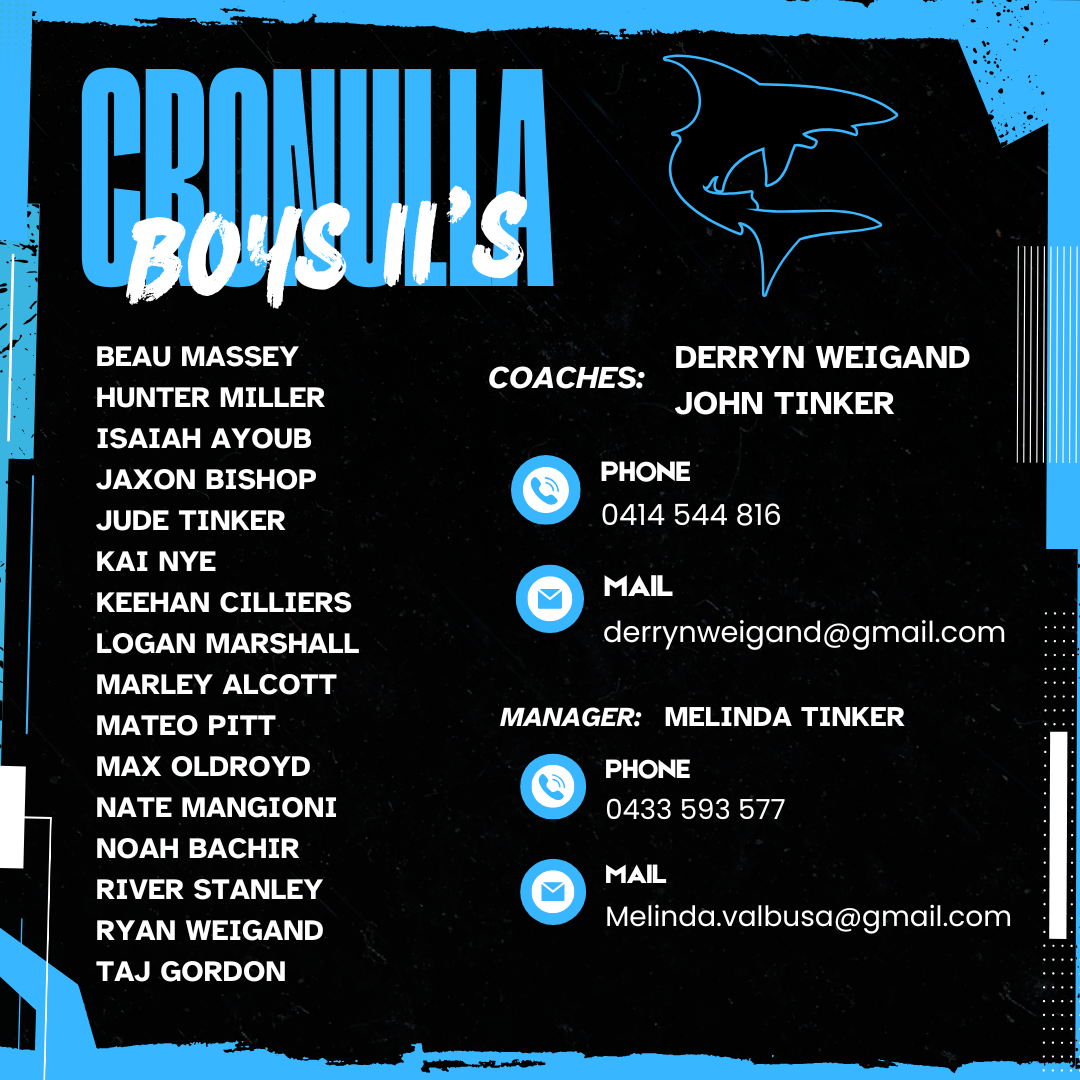 Congratulations to the following players selected to represent Cronulla Sharks at the Oztag State Cup 2026.
