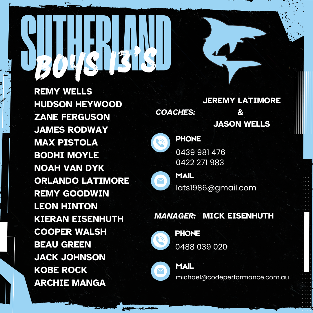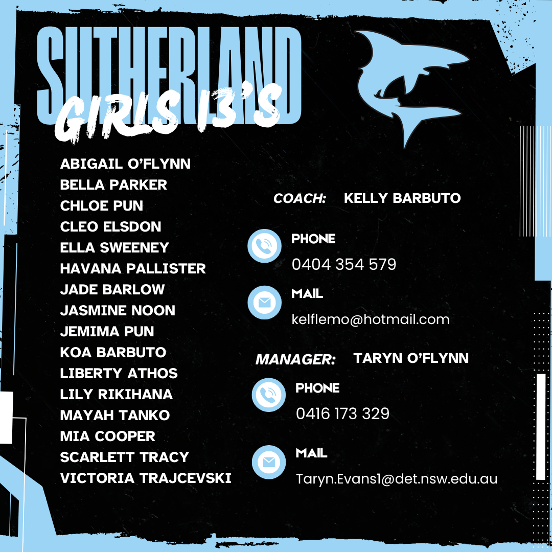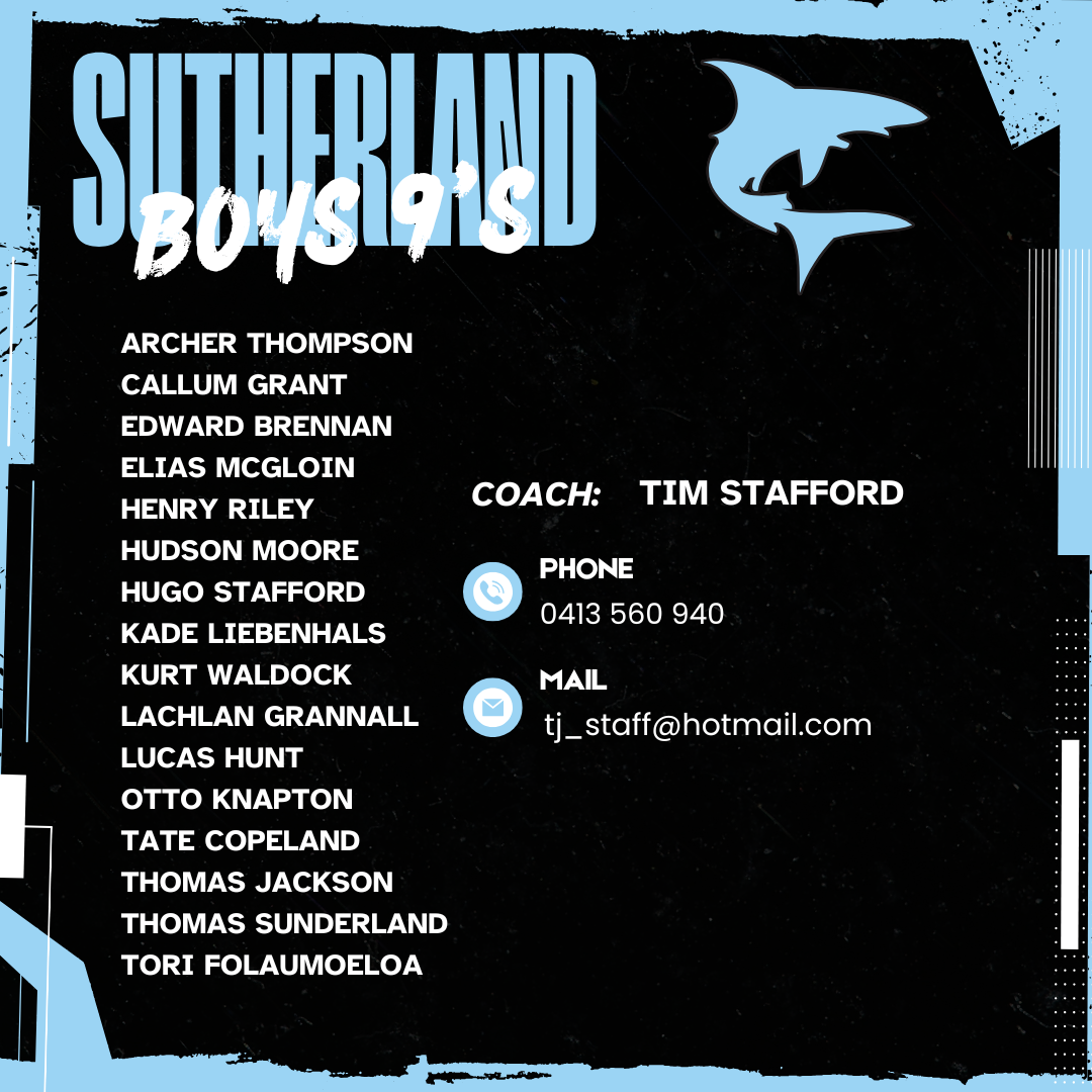 Congratulations to the following players selected to represent Sutherland at the Oztag State Championships 2026.