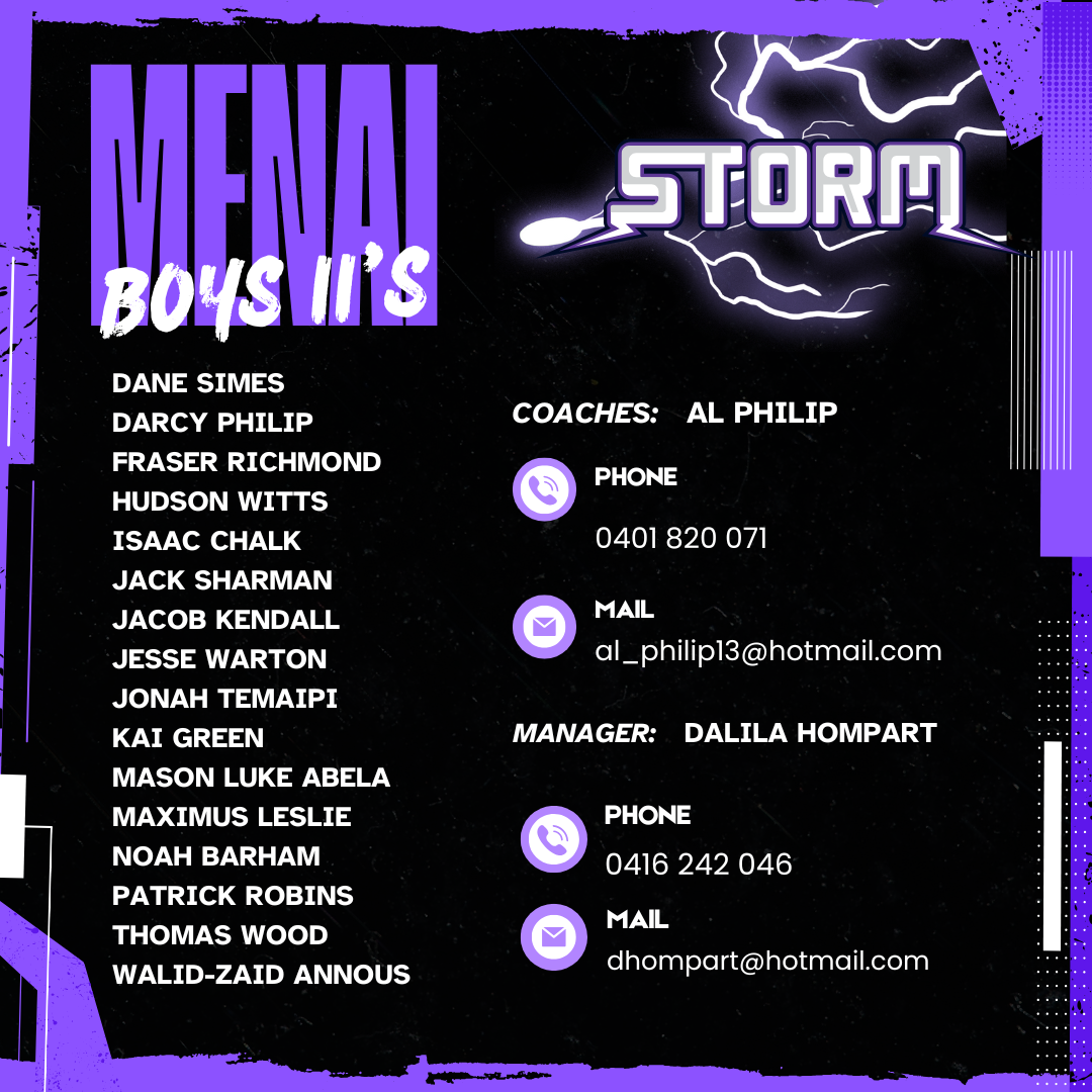 Congratulations to the following players selected to represent Menai at the Oztag State Championships 2026.